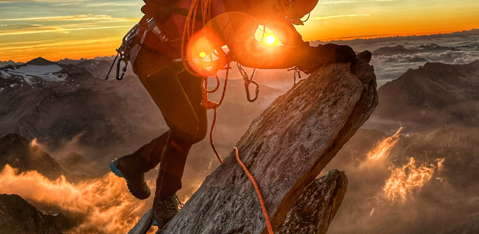 Alle 4 del mattino, con la luce delle frontali e il respiro corto per l’aria sottile, puntiamo al Lagginjoch. Da qui si sviluppa la Cresta Nord: due chilometri di linea ariosa, elegante e continua, che unisce il rigore tecnico alla bellezza della montagna pura.