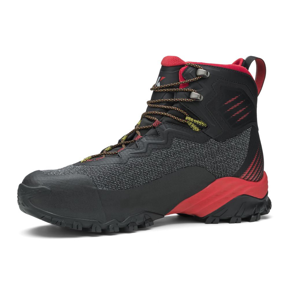 La suola Vibram® DUKE è dotata della tecnologia traction lug, una tassellatura specifica per terreni misti, sassi, ghiaia ed erba che consente di ottenere un maggior grip con il terreno. Sul puntale è presente una climbing zone, ideale per i tratti più impegnativi o di sentiero attrezzato, mentre il puntale in gomma e il prolungamento a baffo della suola proteggono il piede e aiutano nell’assorbimento degli urti.