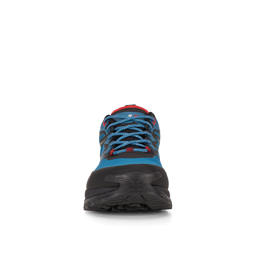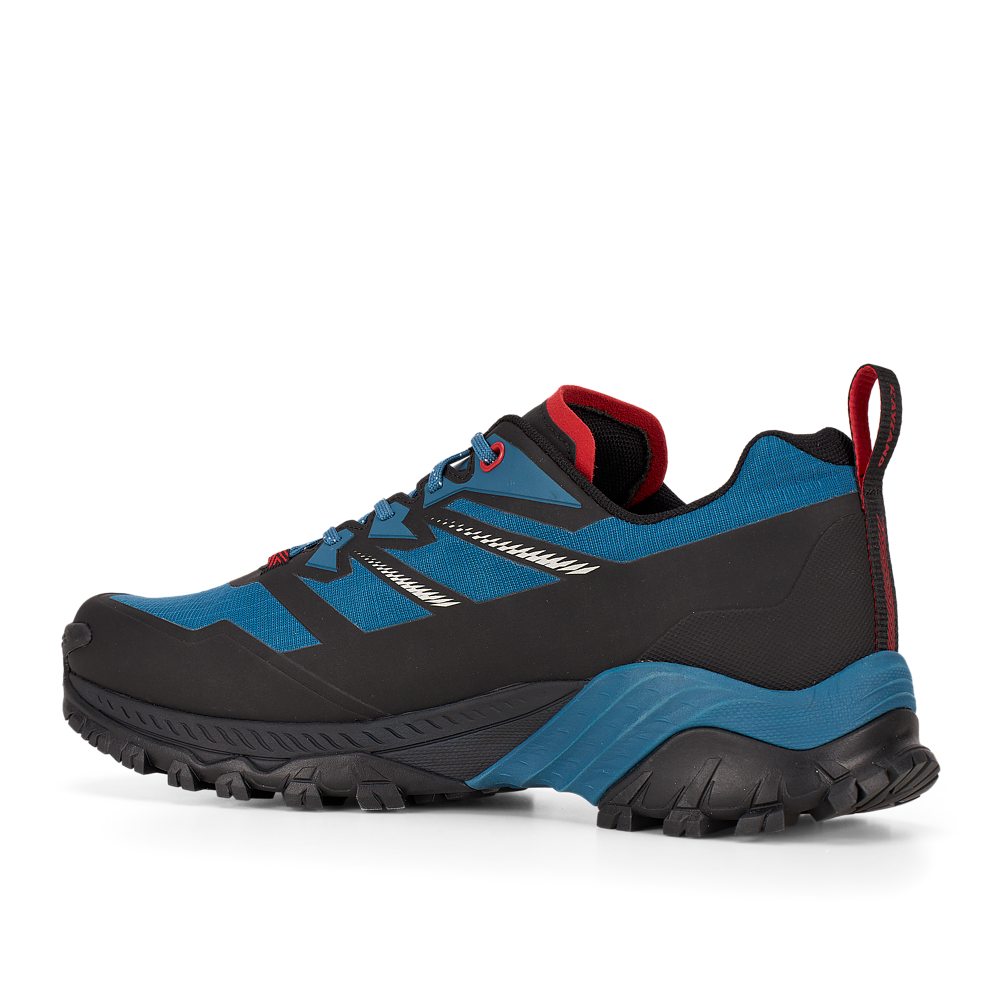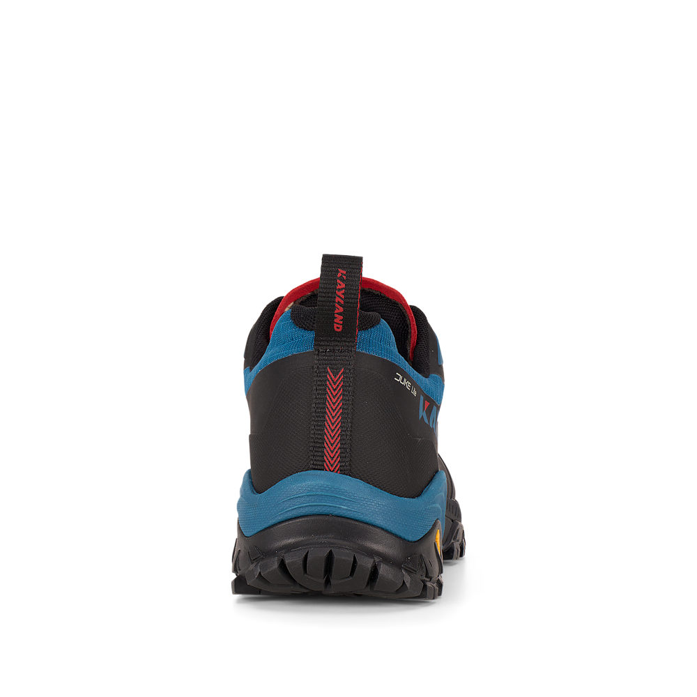 La suola Vibram® DUKE è dotata della tecnologia traction lug, una tassellatura specifica per terreni misti, sassi, ghiaia ed erba che consente di ottenere un maggior grip con il terreno. Sul puntale è presente una climbing zone, ideale per i tratti più impegnativi o di sentiero attrezzato, mentre il puntale in gomma e il prolungamento a baffo della suola proteggono il piede e aiutano nell’assorbimento degli urti.