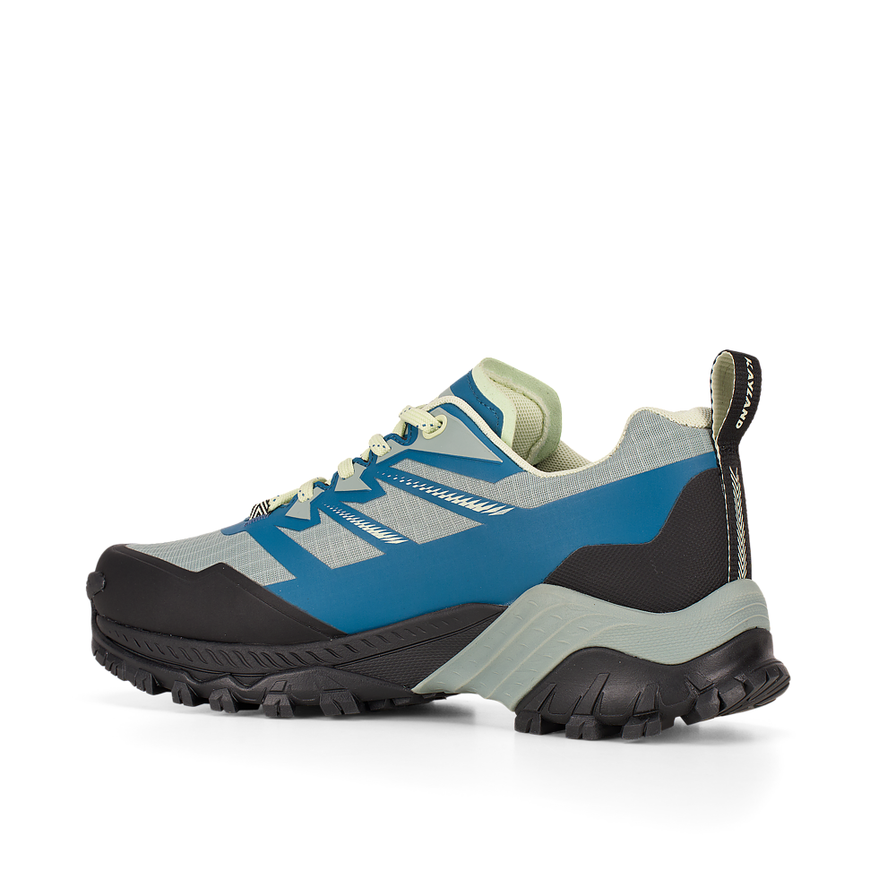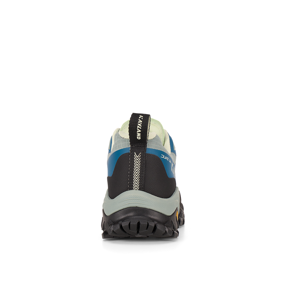 La suola Vibram® DUKE è dotata della tecnologia traction lug, una tassellatura specifica per terreni misti, sassi, ghiaia ed erba che consente di ottenere un maggior grip con il terreno. Sul puntale è presente una climbing zone, ideale per i tratti più impegnativi o di sentiero attrezzato, mentre il puntale in gomma e il prolungamento a baffo della suola proteggono il piede e aiutano nell’assorbimento degli urti.