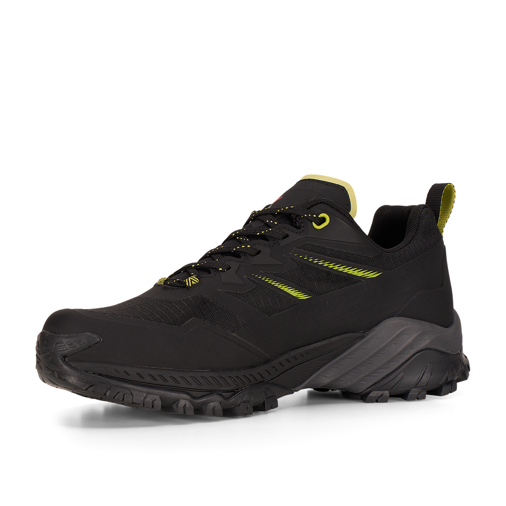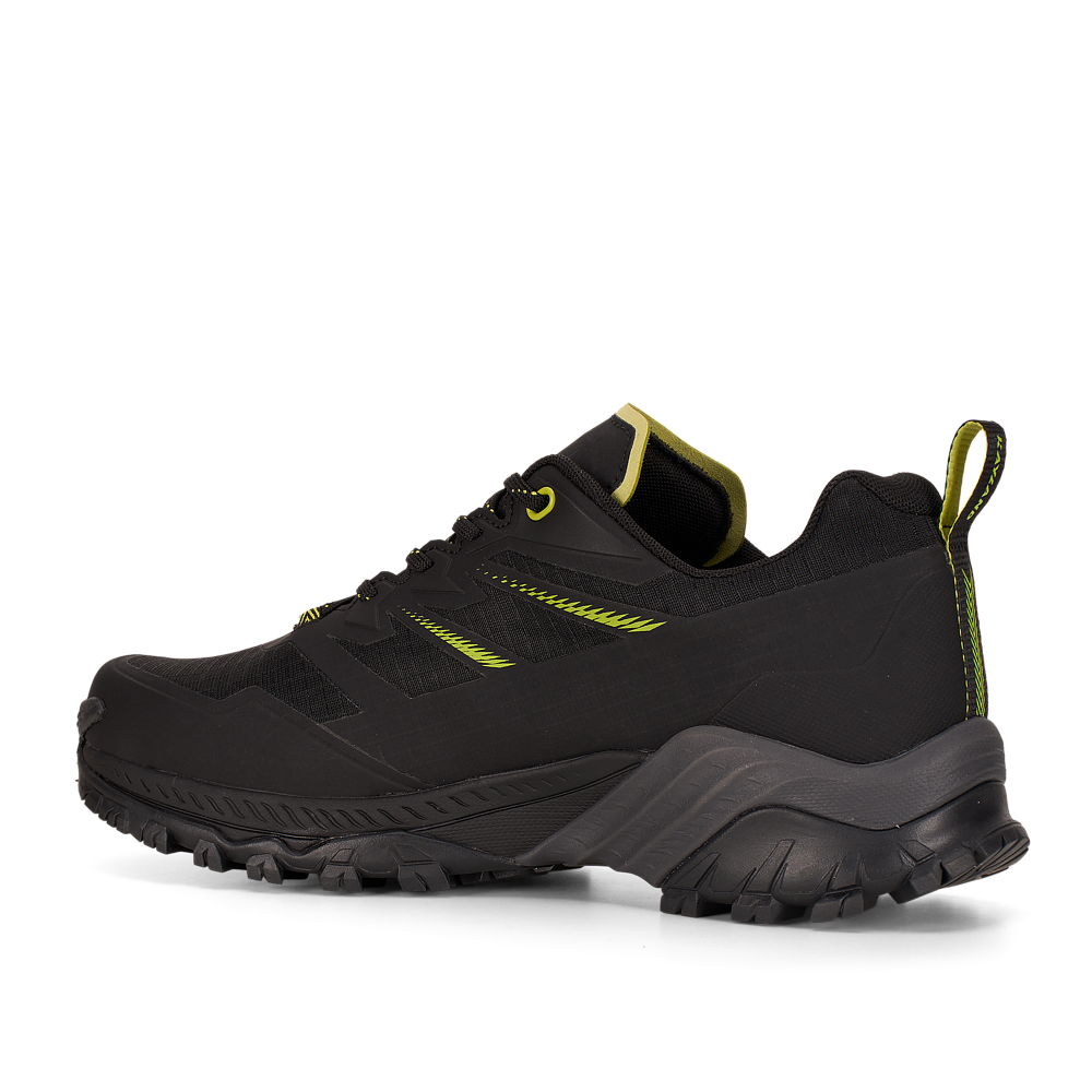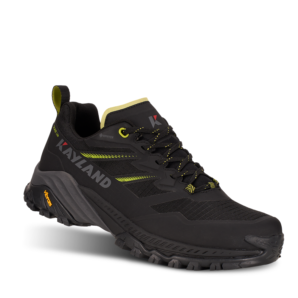 La suola Vibram® DUKE è dotata della tecnologia traction lug, una tassellatura specifica per terreni misti, sassi, ghiaia ed erba che consente di ottenere un maggior grip con il terreno. Sul puntale è presente una climbing zone, ideale per i tratti più impegnativi o di sentiero attrezzato, mentre il puntale in gomma e il prolungamento a baffo della suola proteggono il piede e aiutano nell’assorbimento degli urti.