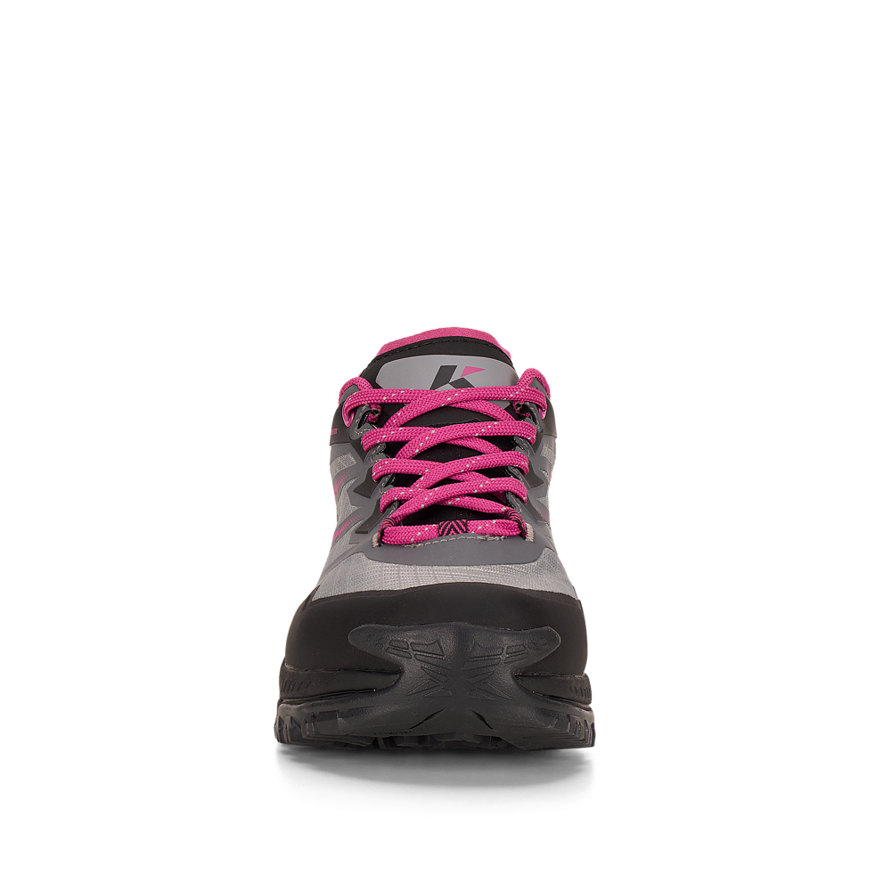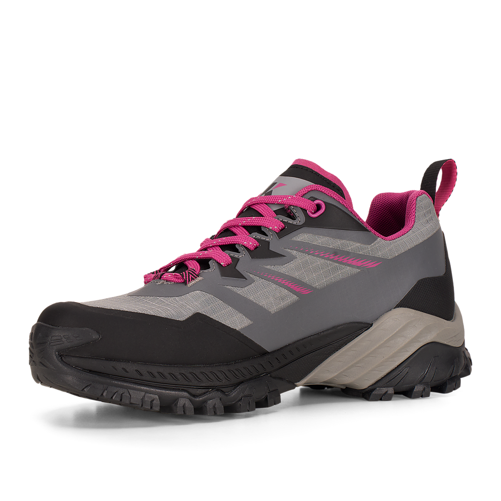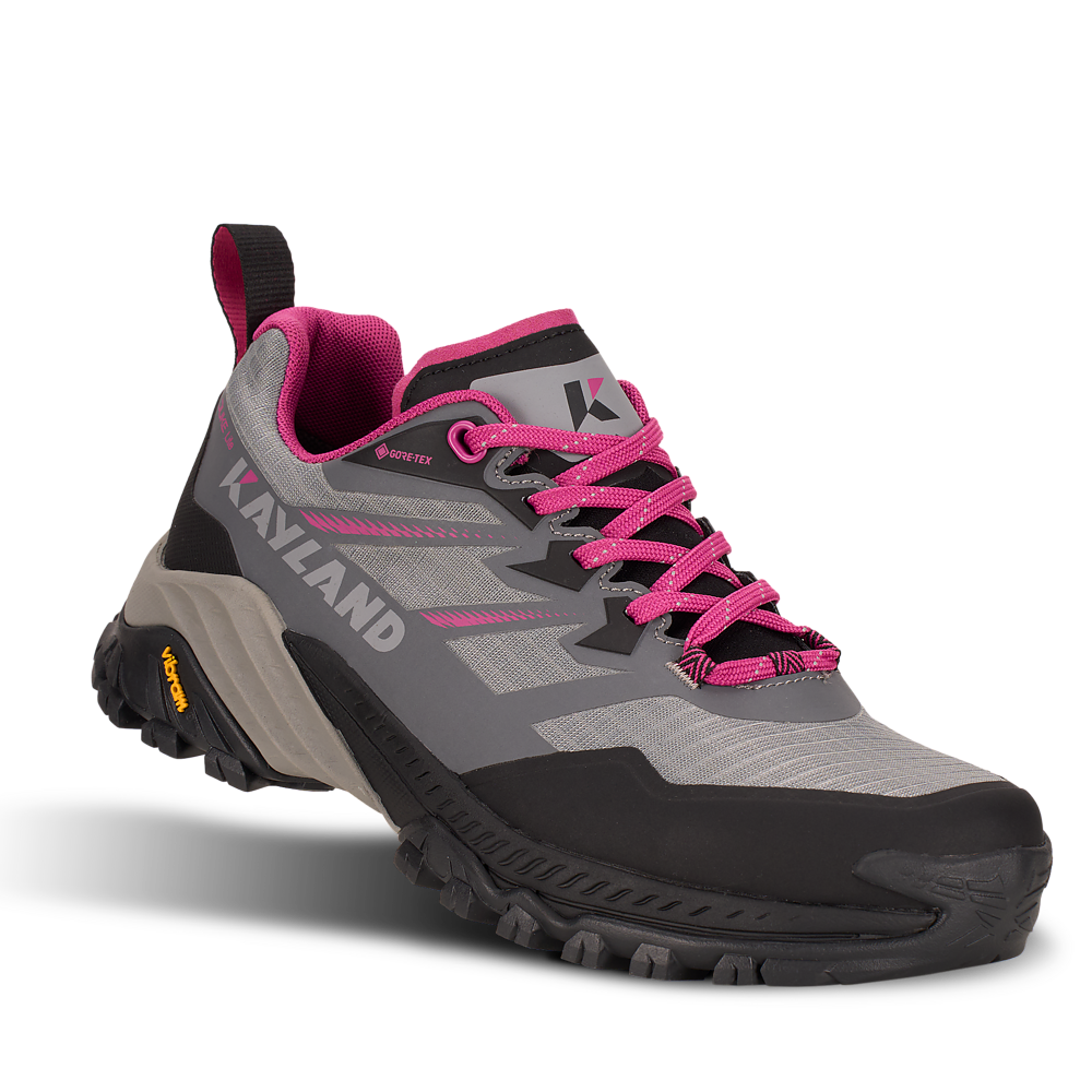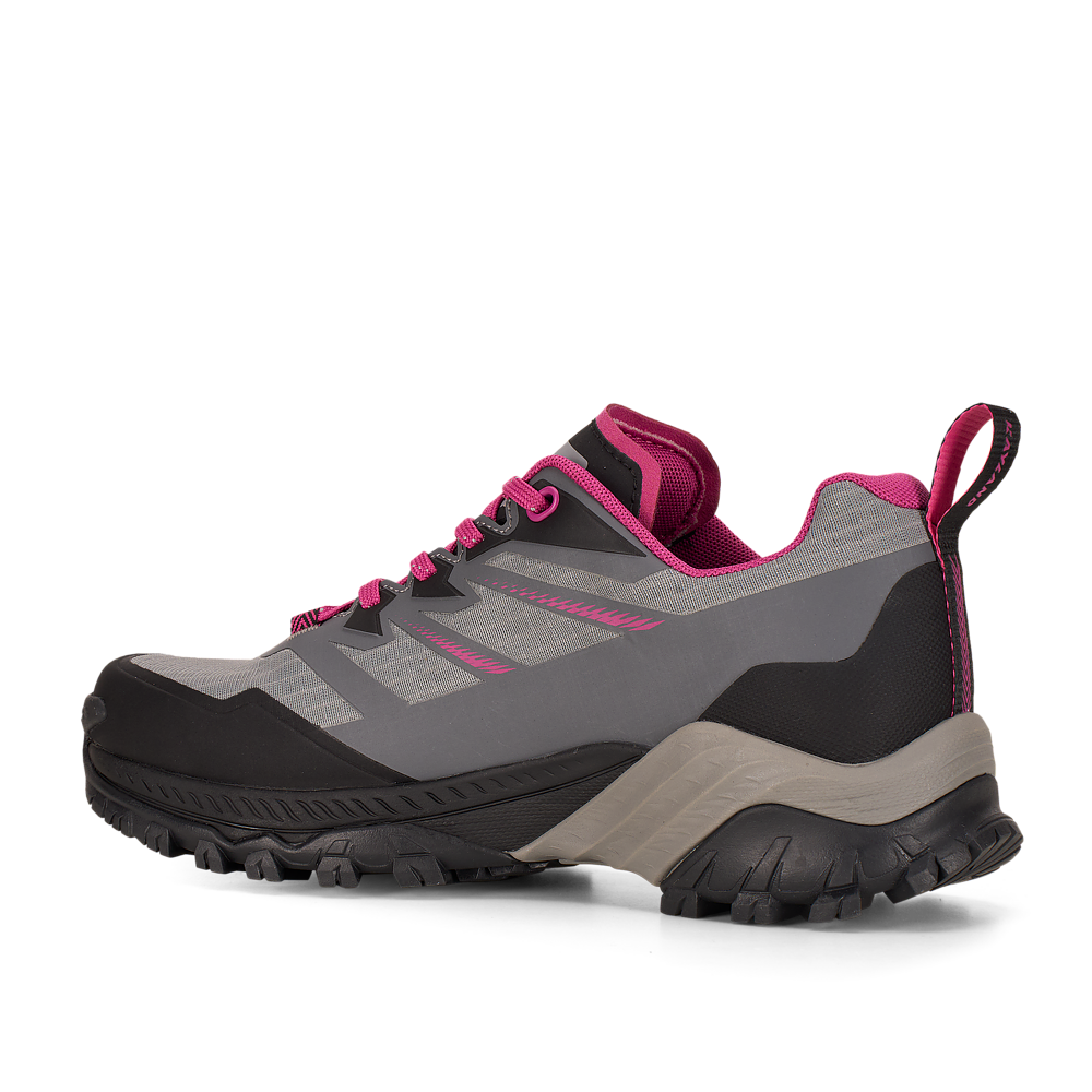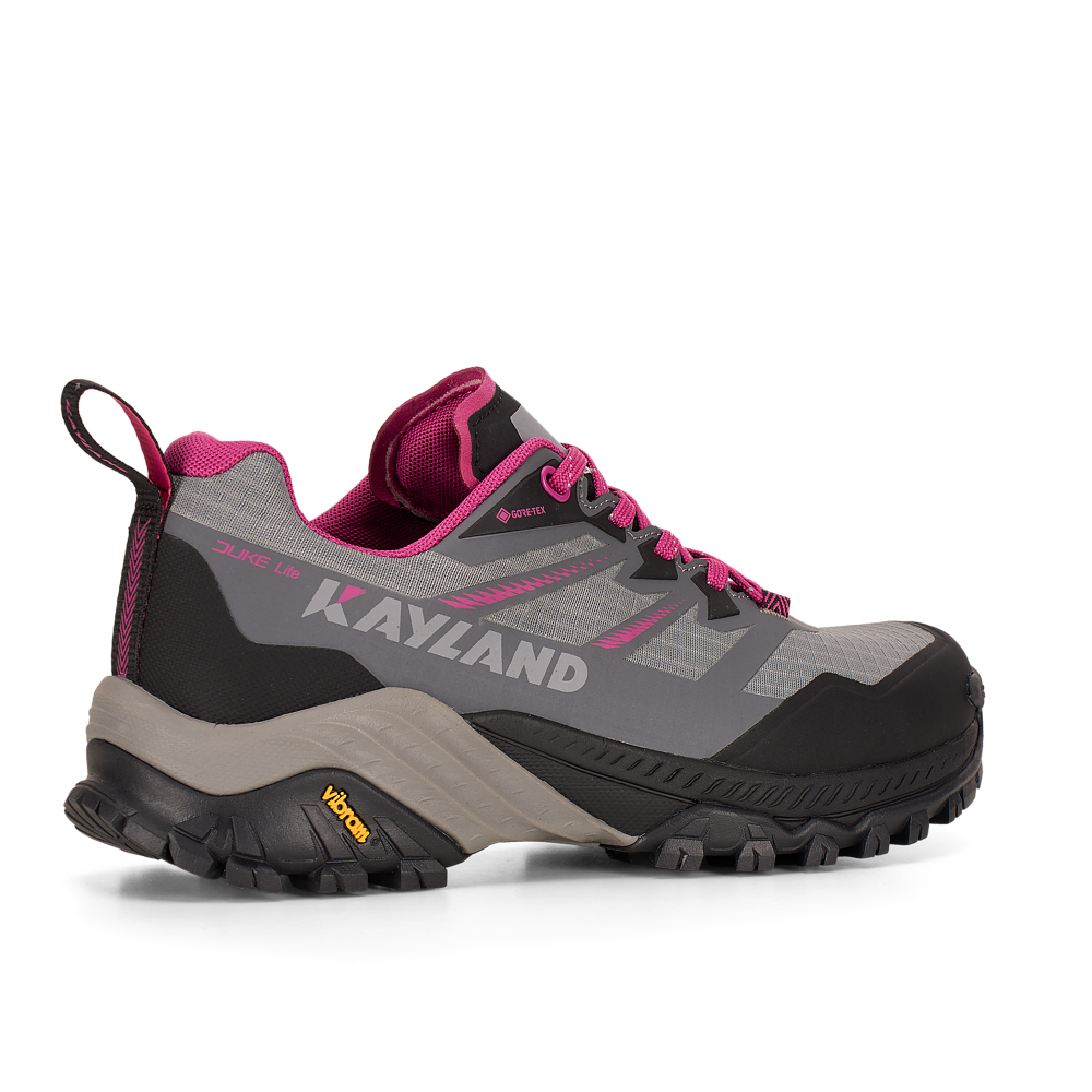 La suola Vibram® DUKE è dotata della tecnologia traction lug, una tassellatura specifica per terreni misti, sassi, ghiaia ed erba che consente di ottenere un maggior grip con il terreno. Sul puntale è presente una climbing zone, ideale per i tratti più impegnativi o di sentiero attrezzato, mentre il puntale in gomma e il prolungamento a baffo della suola proteggono il piede e aiutano nell’assorbimento degli urti.